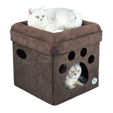 Go Pet Club Brown Paw Print Comfy Cat Cube Bed 16 L X 16 W X 16 5 H Petco