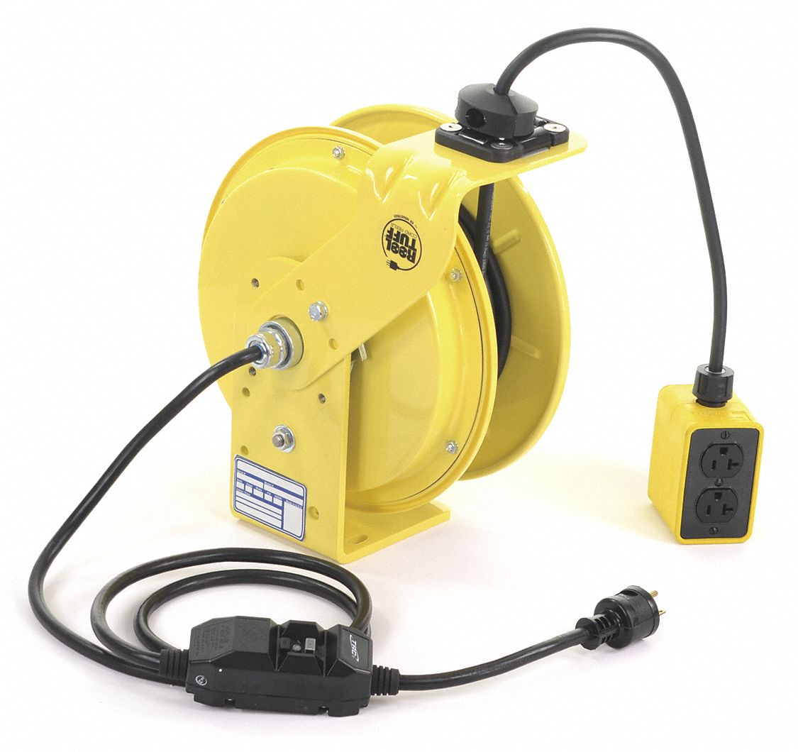 Thonapa 30 ft retractable extension cord reel with breaker switch and 3 electrical power outlets 16 3 sjtw durable orange cable perfect for hanging from your garage ceiling 4 6 out of 5 stars 214 41 00 41.